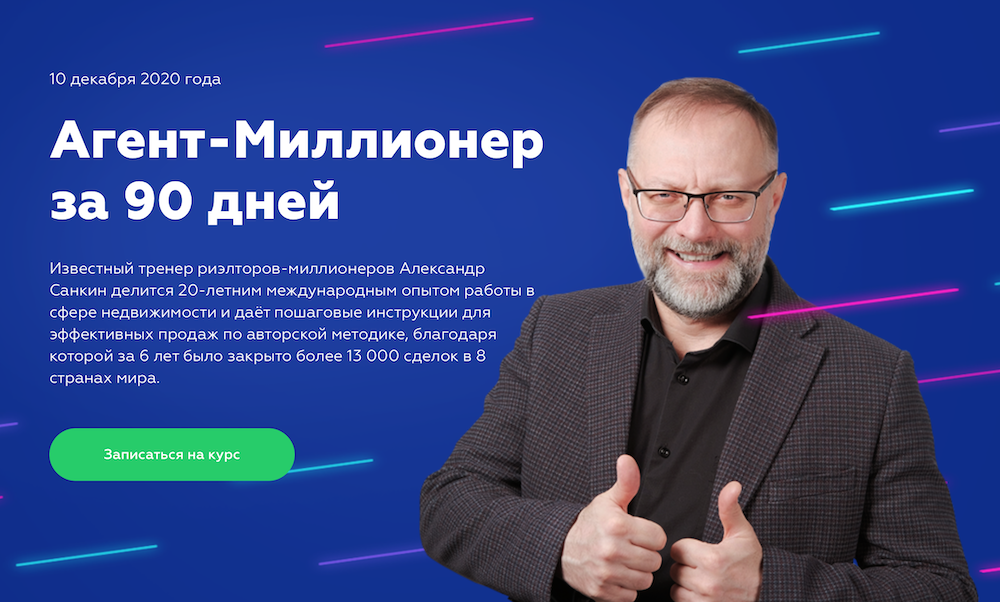 | 1) Первая новость заключается в том, что 10 декабря 2020 г. в 11:30 стартует 36-й поток легендарного авторского курса «Агент-миллионер за 90 дней». Внимание! До конца льготного периода, когда вы можете записаться на курс по минимальной цене, осталось всего 2 дня!