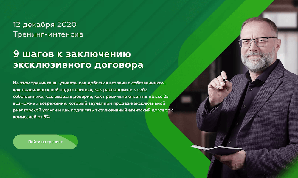 Как подготовиться к встрече с собственником и как вести себя на встрече, разберем на вебинаре вместе с Александром Санкиным. Всего 9 шагов отделяет вас от успешного подписания эксклюзивного договора. | | Бесплатно | | | | Тренинг-интенсив 12 декабря | | 4х часовой тренинг-интенсив с 12:00 до 17:00 Мск